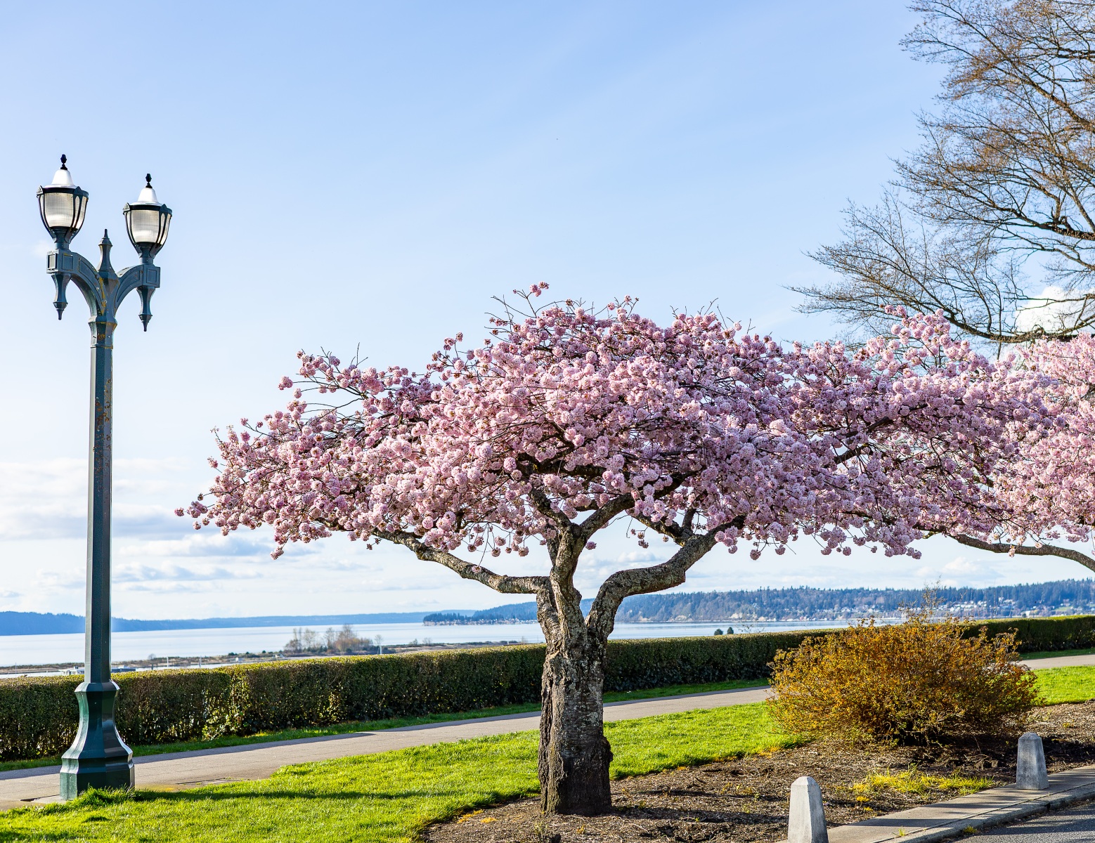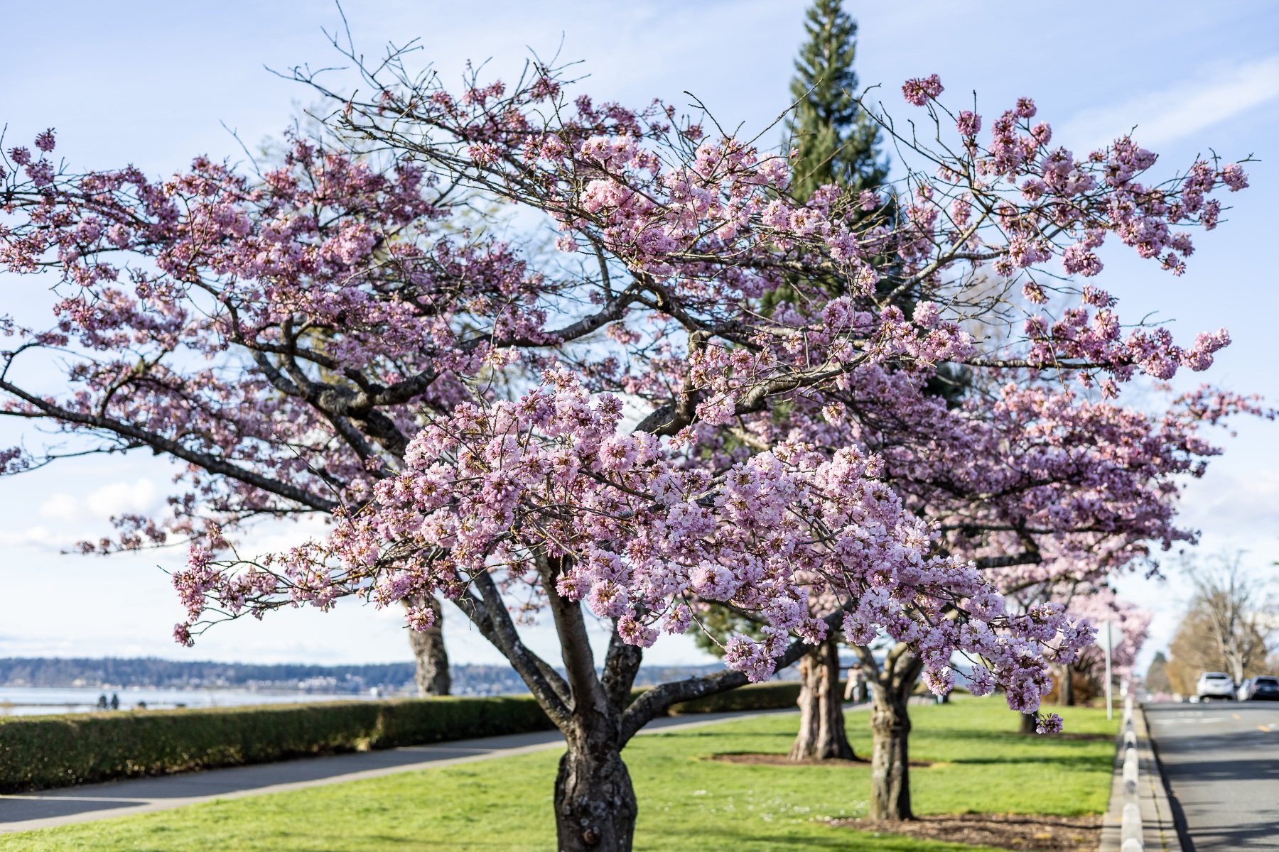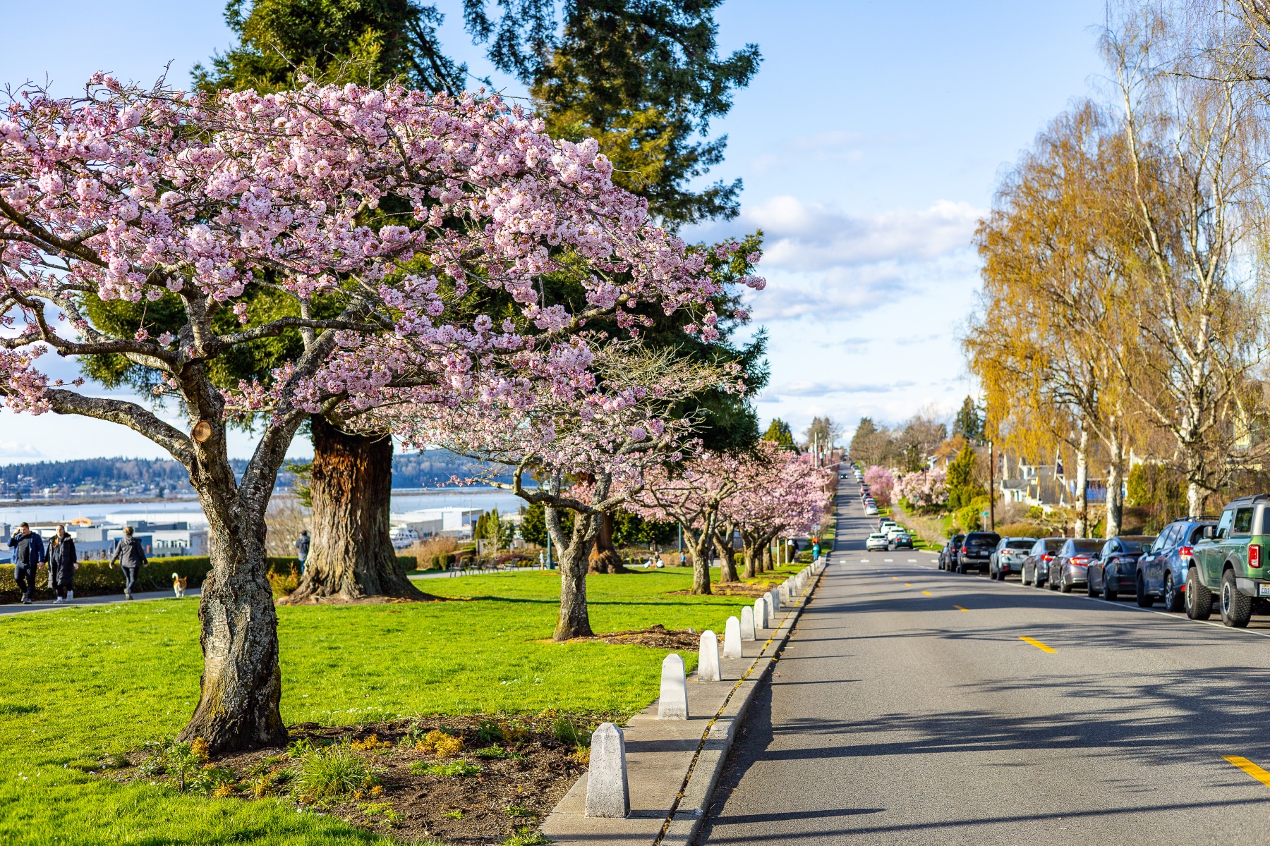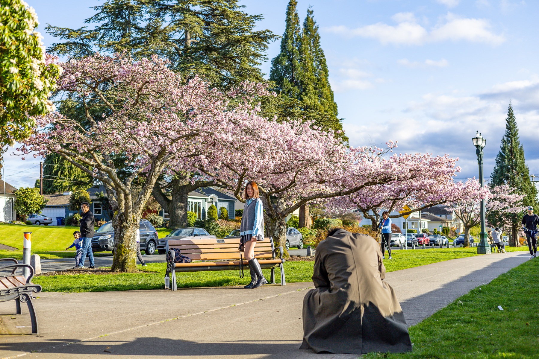 The blossoms were out, people were out so we took pictures of both on this sunny Saturday afternoon at Grand Avenue Park which overlooks the waterfront in Everett, Washington.