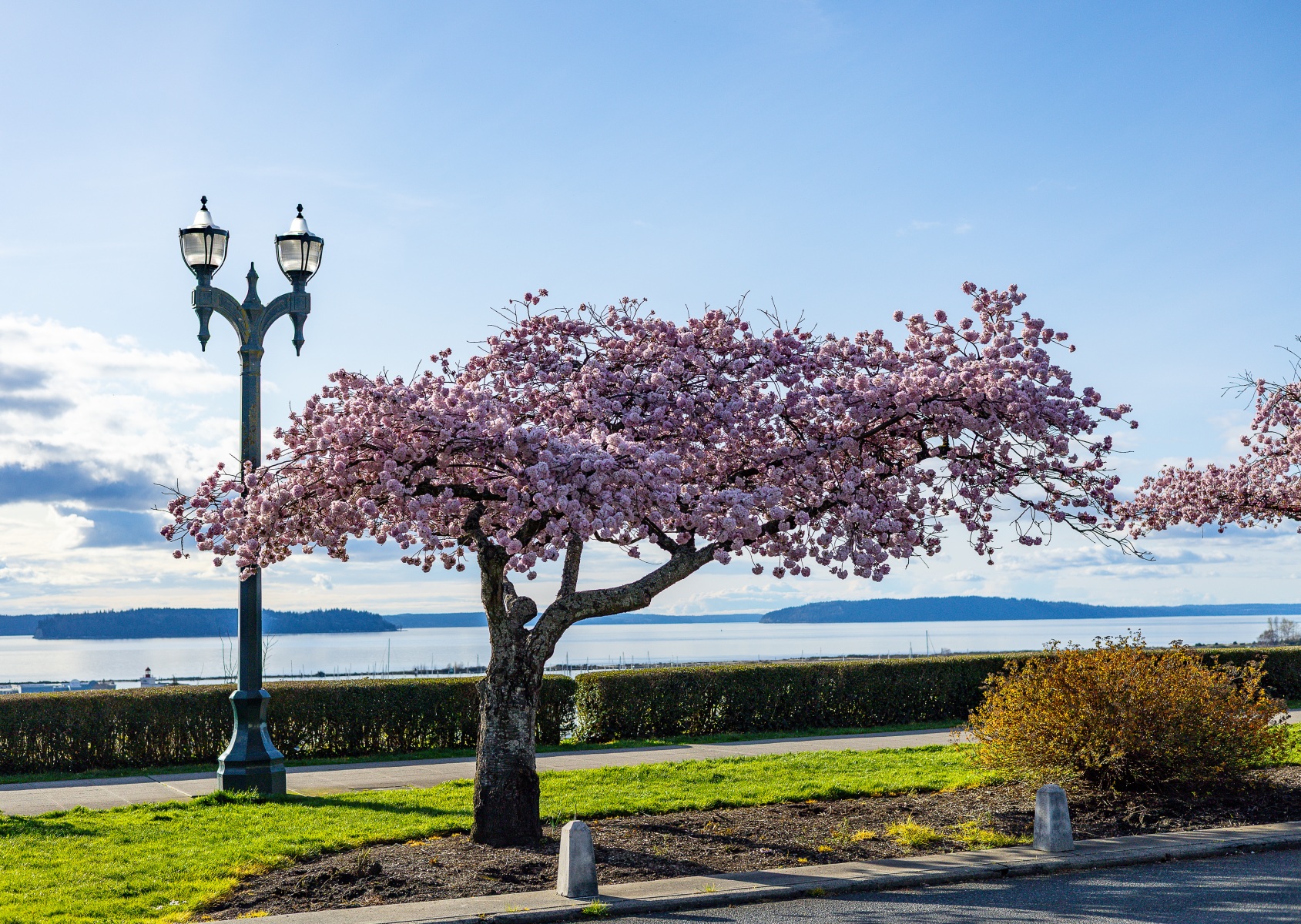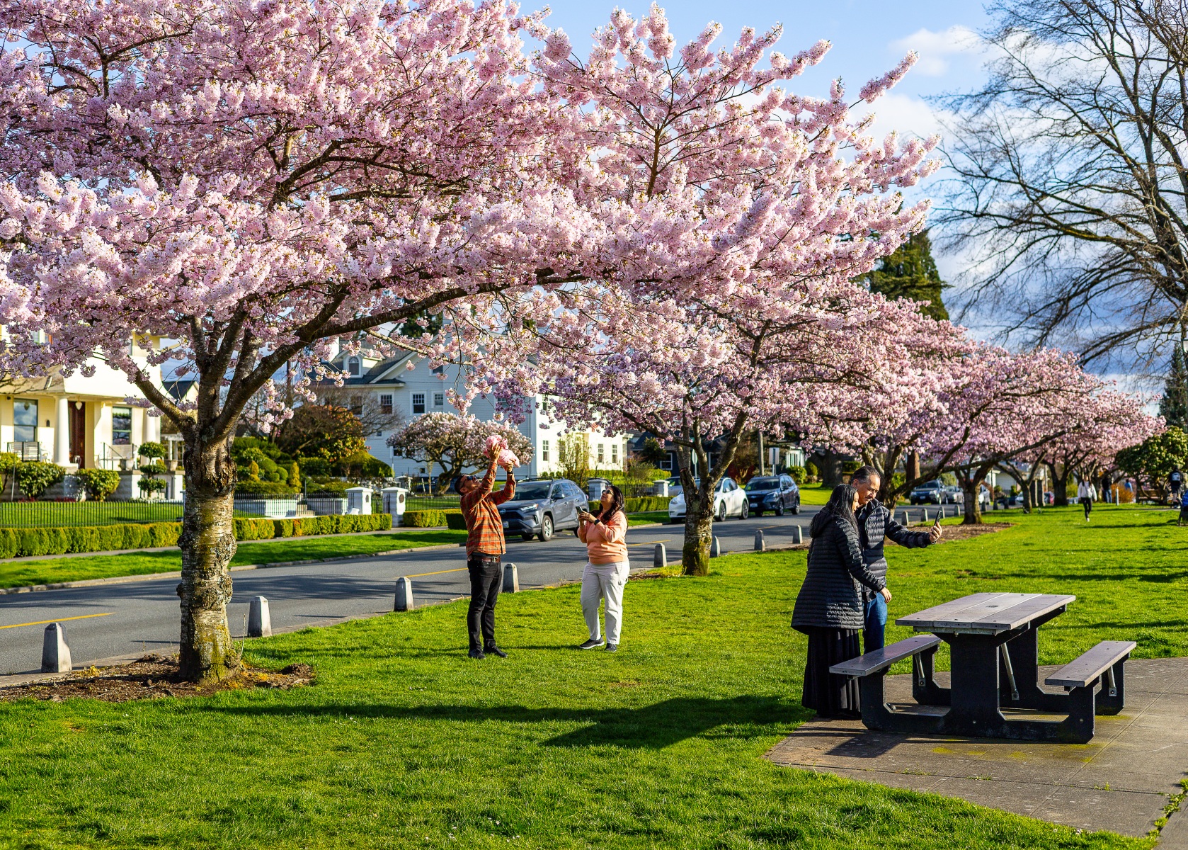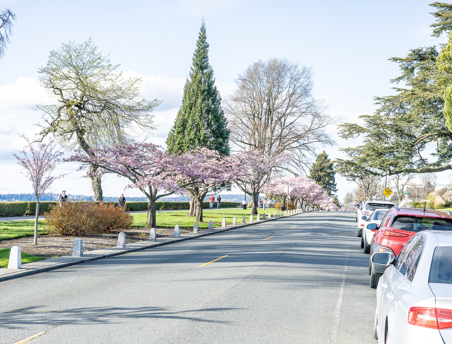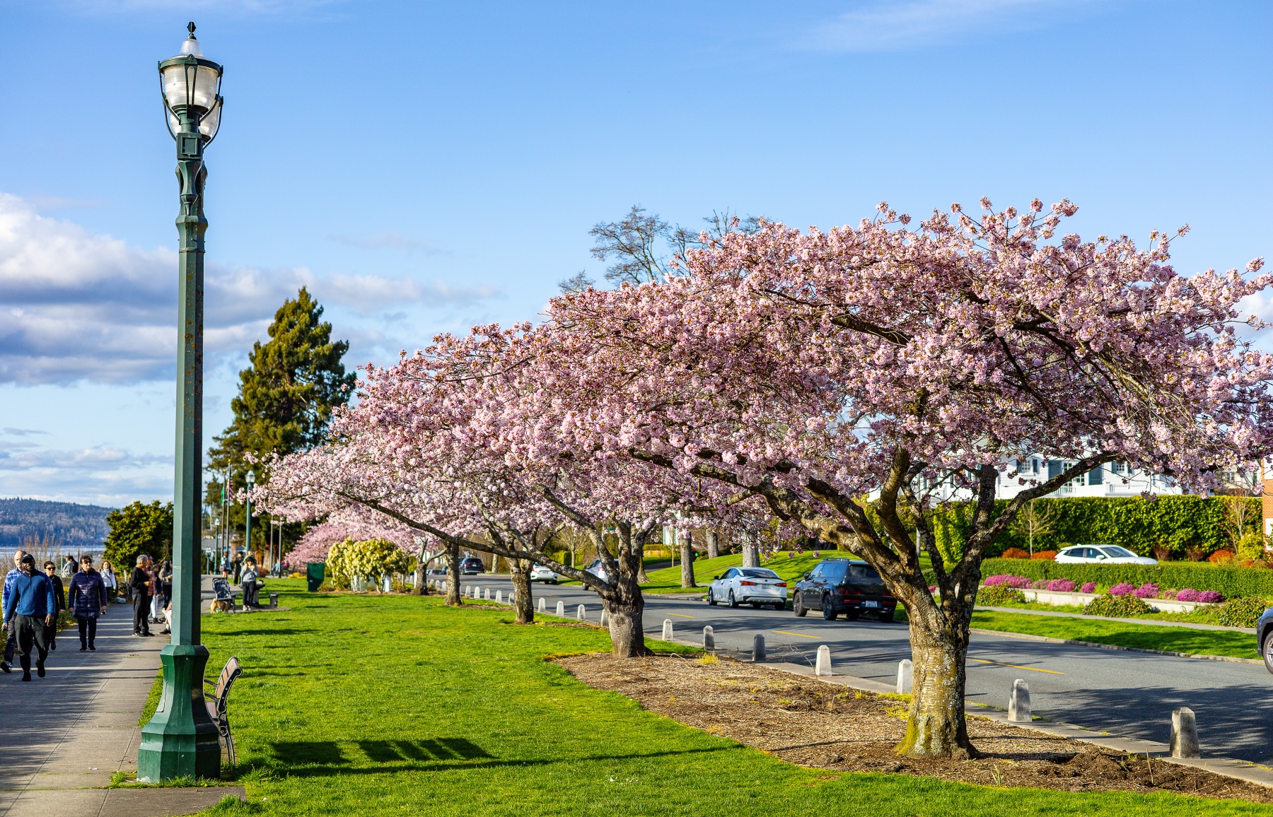 The blossoms were out, people were out so we took pictures of both on this sunny Saturday afternoon at Grand Avenue Park which overlooks the waterfront in Everett, Washington.