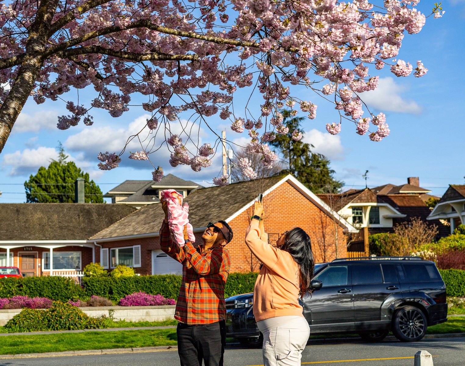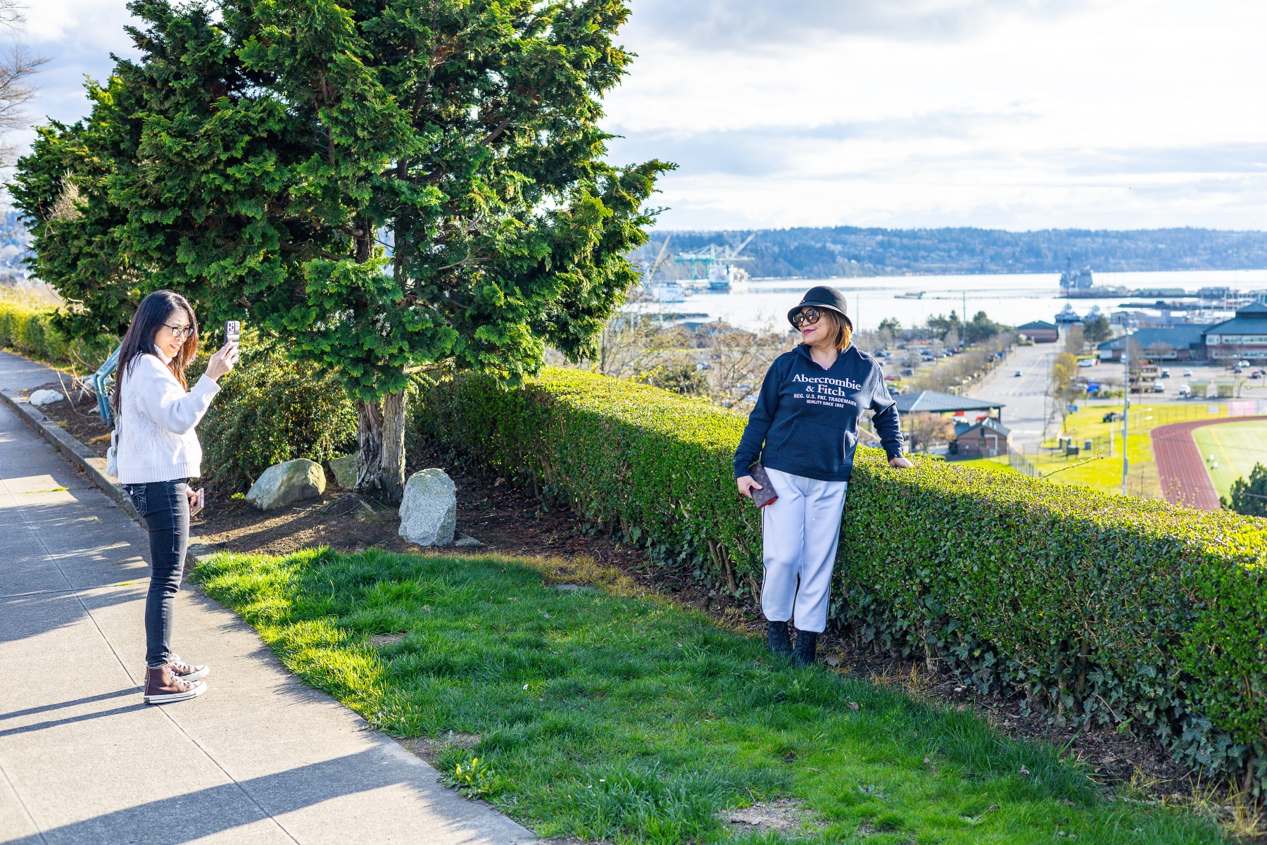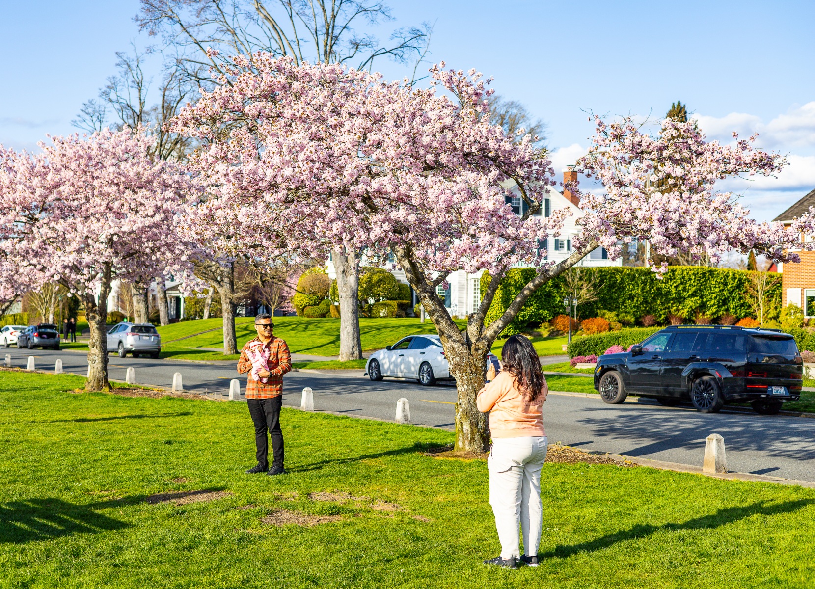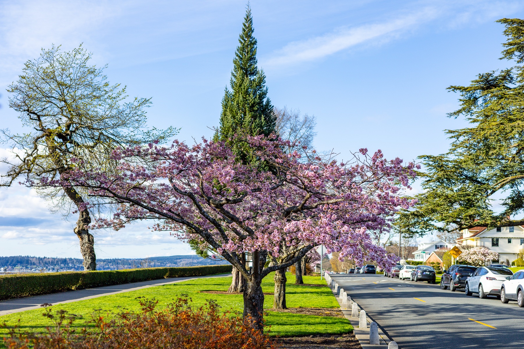 The blossoms were out, people were out so we took pictures of both on this sunny Saturday afternoon at Grand Avenue Park which overlooks the waterfront in Everett, Washington.